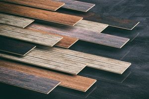 Laminate flooring is made from recycled wood with a protective wear layer on top to prevent scratches. It requires a level surface for proper installation to avoid warping. Since it contains real wood, it’s not suitable for bathrooms or areas with high moisture.